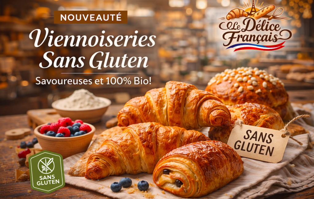 Au Délice Français, nous avons toujours eu à cœur de proposer des produits savoureux, authentiques et accessibles à tous. Aujourd’hui, nous sommes fiers de vous présenter une grande nouveauté : notre gamme de viennoiseries sans gluten, spécialement conçue pour répondre aux attentes de nos clients soucieux de leur alimentation ou présentant des intolérances.